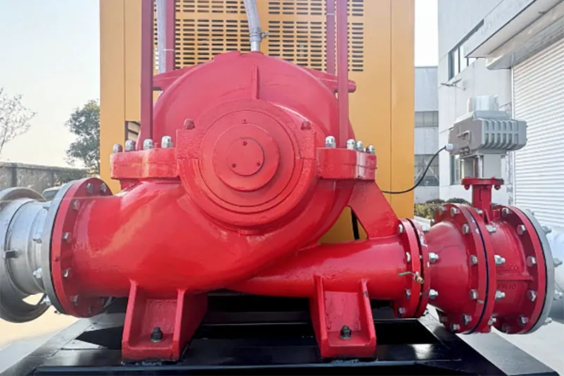 Premium materials: The pump body and impeller are constructed from QT500, while the pump shaft is made from durable 40Cr alloy steel, guaranteeing strength and longevity.Vacuum-assisted system: The double-suction pump is equipped with a vacuum assist system, which includes a vacuum pump and related accessories. The vacuum pump is driven by the main diesel engine.Durable enclosure: The robust enclosure, crafted from high-quality galvanized steel plate (minimum 2.0mm thickness) with sandblasting, rust prevention, and a 300-degree high-temperature plastic spraying and baking finish, provides superior protection. Access doors on both sides facilitate easy control system observation, operation, inspection, and maintenance.