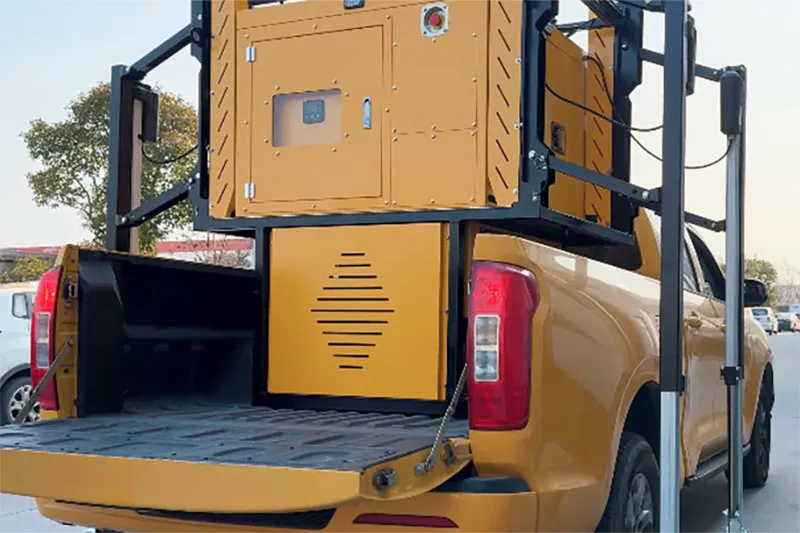 - Electric lifting system: The equipment is raised using an electric support leg assembly, making transportation and installation easier and faster.